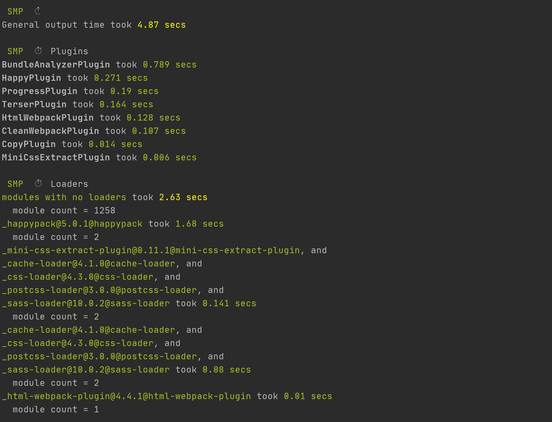 const SpeedMeasurePlugin = require('speed-measure-webpack-plugin');